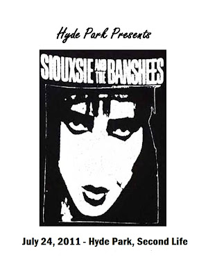 Join London this weekend for a FREE Siouxsie and the Banshees Tribute Band concert in Hyde Park! This weekend kicks off on Saturday with a special 4 hour set by Retrograde mixmaster Croft! This event begins at 12pm slt! On Sunday we have a special 90 minute pre concert event with one of your favorite London DJ's beginning at 10 am slt. Then at 1145 am slt the Siouxsie and the Banshees Tribute Band will hit the stage!! Do not miss out on any of these special events! We also will have a jammed packed contest board also, so you can win free lindens!